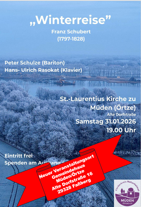 Am 31. Januar 2026 um 19:00 Uhr erwartet Musikliebhaber in der St. Laurentiuskirche in Müden/Örtze ein besonderes Highlight: Die Winterreise D 911 von Franz Schubert, einer der bedeutendsten Liederzyklen der […]